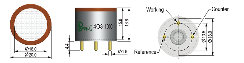 該傳感器設(shè)計用于測量氣相中的 O3 濃度。它可以用作其他制造商制造的標準4系列電化學(xué)O3傳感器的引腳對引腳替代。